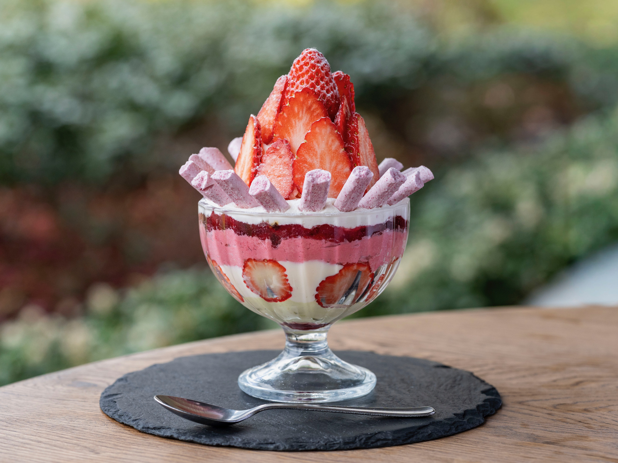 人気のパフェが爽やかな季節に合わせてドレスアップ。いちごとよく合うピスタチオを組み合わせた贅沢なパフェです。