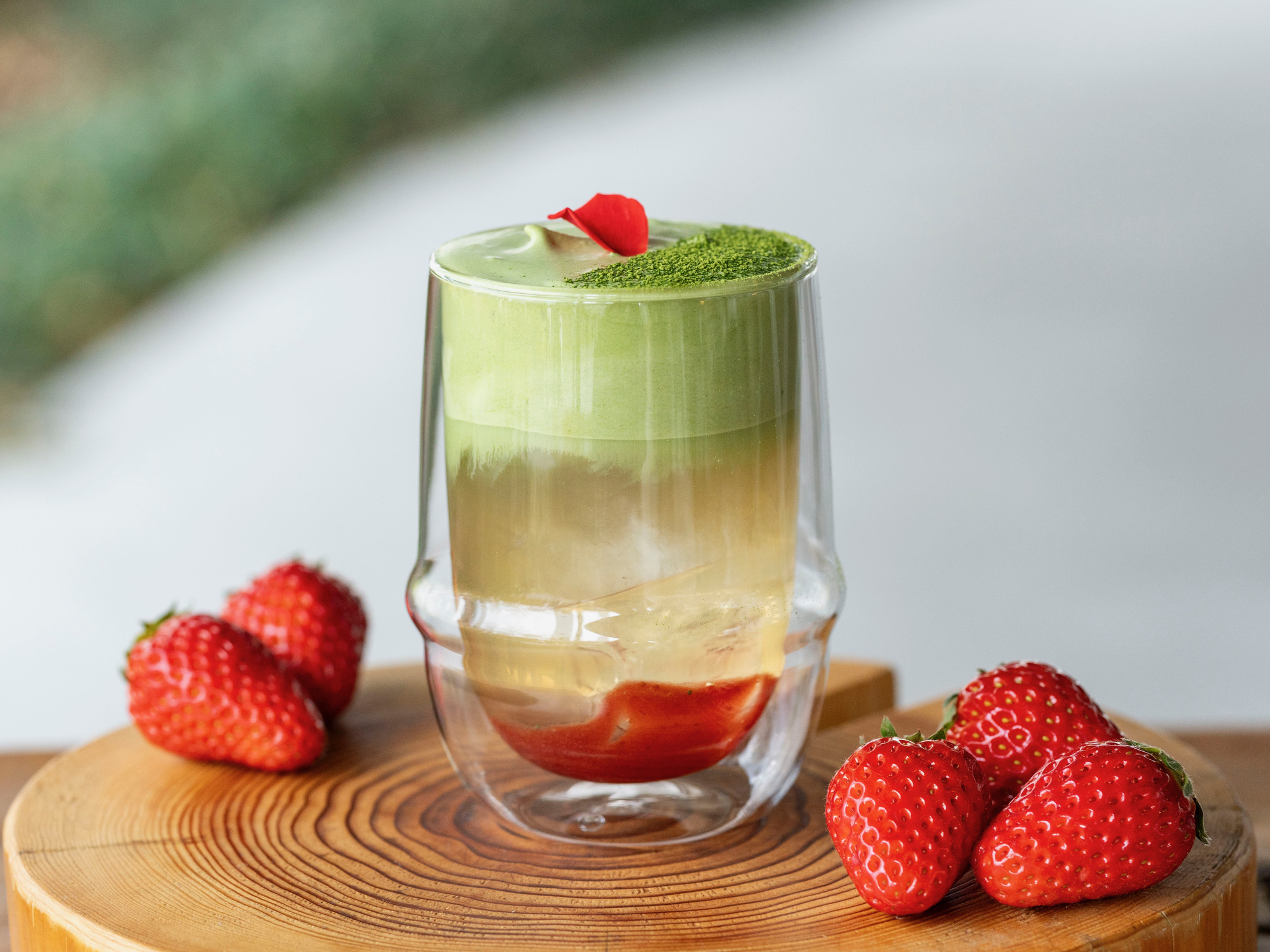 甘酸っぱい苺とココナッツの軽やかさに抹茶のコクを重ねた、庭園の新緑を思わせるレイヤードドリンク。