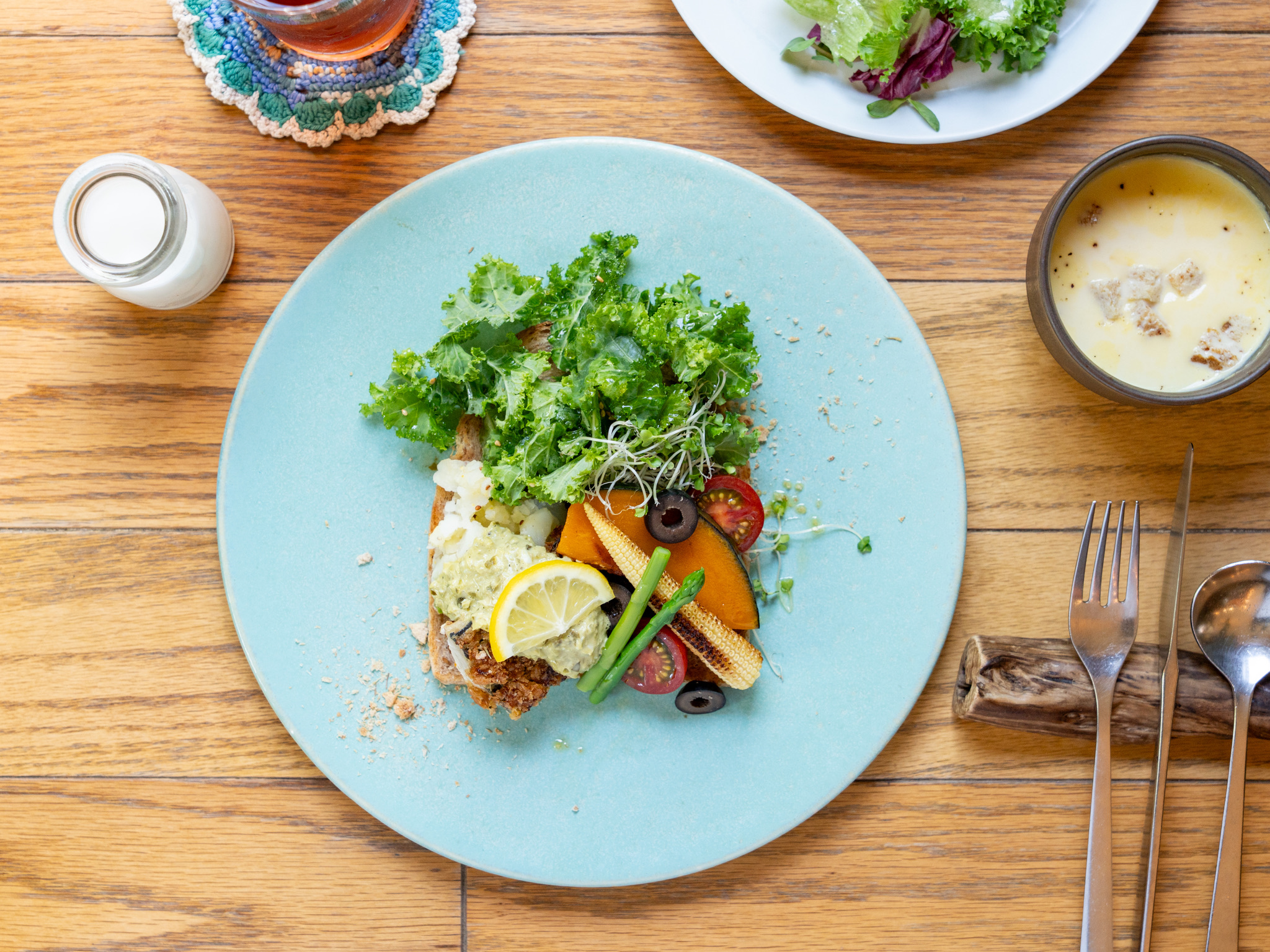 スモーブロー+サラダ+スープ+セットドリンク+食後のミニデザート